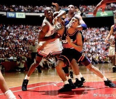 凯文约翰逊篮下和乔丹卡位抢篮板